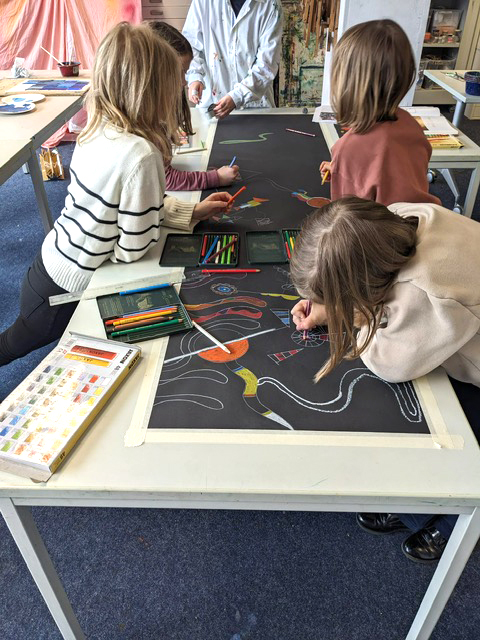 Zum hundertjährigen Jubiläum „der Blauen Vier“ (Paul Klee, Wassily Kandinsky, Lyonel Feininger, Alexej von Jawlensky) im Jahr 2024 haben wir in den Osterferien 2024 Kinder und Jugendliche zwischen 6 und 14 Jahren dazu eingeladen, in die Welt der Blauen Vier einzutauchen.Als kultureller Lernort verstehen wir uns nicht nur als Multiplikator kultureller Bildung, sondern wollen den Schüler:innen mit Hilfe des PINX-Pattern Prinzips eine selbstermächtigende Arbeitsweise ermöglichen. In selbstgewählten Gruppen erforschten die Kinder und Jugendlichen Bauhaus, Avantgardismus und Expressionismus. Unsere Motivation ist es, Schüler:innen in ergebnisoffenen Prozessen die verschiedenen Kunstrichtungen zu vermitteln und ihnen den Raum für eigene Kreationen zu eröffnen.